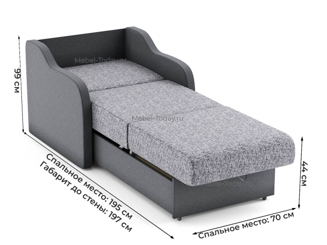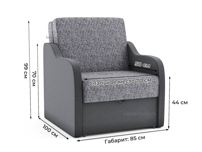 Кресло-кровать Людмила 70 см с мягкими подлокотниками, механизм аккордеон