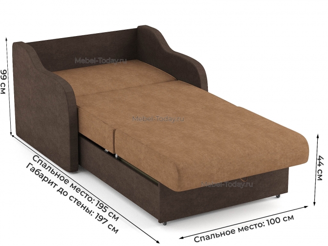 Диван-кровать Людмила 100 см с мягкими подлокотниками, механизм аккордеон
