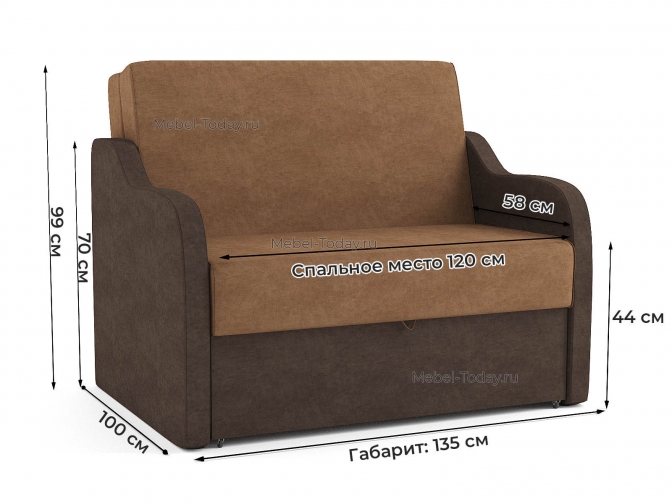 Диван Людмила 120 см с мягкими подлокотниками, механизм аккордеон