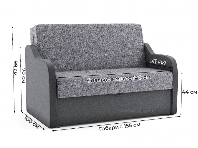 Диван-кровать аккордеон Людмила 140 см с мягкими подлокотниками