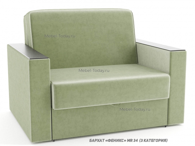 Диван аккордеон Неаполь 100 см односпальный с деревянными прямыми широкими подлокотниками с накладками МДФ
