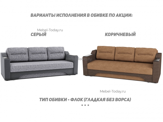 Модель в обивке флок по фото со скидкой. Цена по фото. В наличии две комбинации цвета: серая и коричневая. Вы также можете выбрать диван в другой обивке, но подороже (более 200 вариантов тканей).