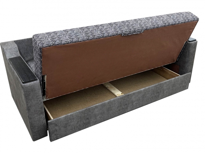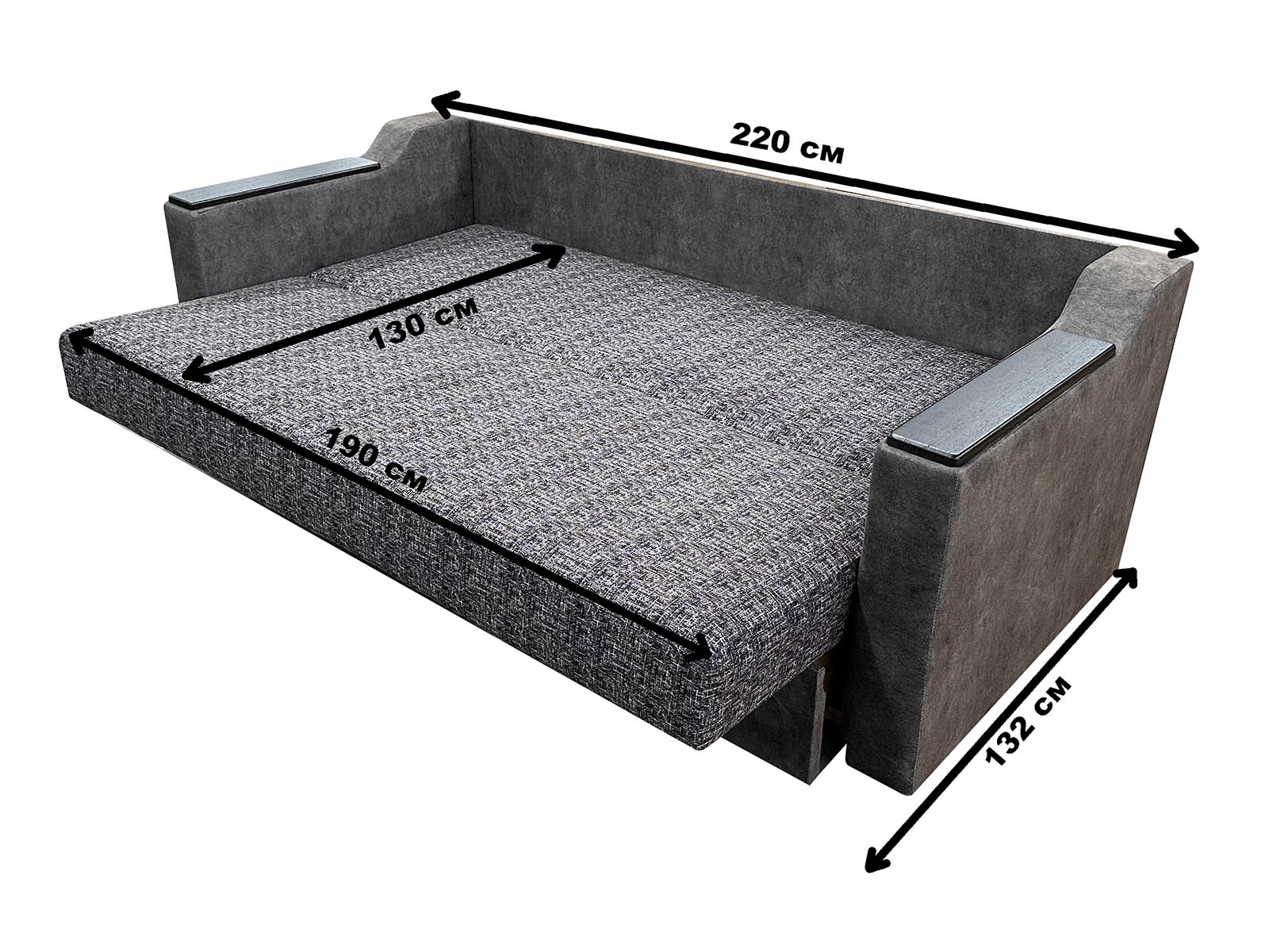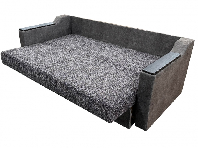 Диван-книжка выкатная Лена 130 с МДФ прямыми подлокотниками, в обивке по акции серый или коричневый флок