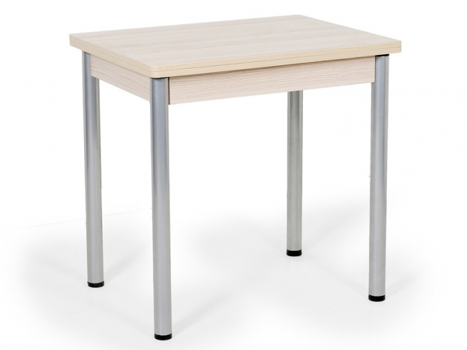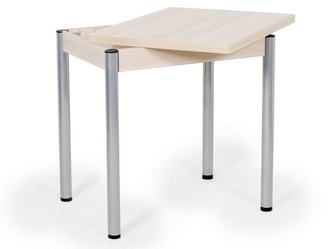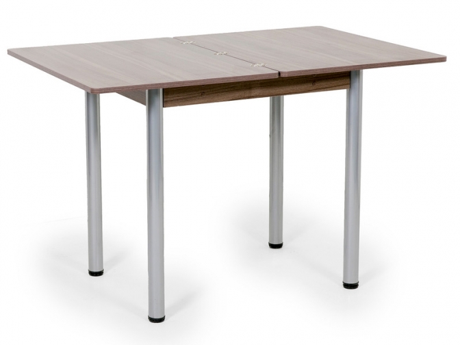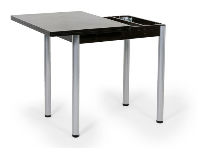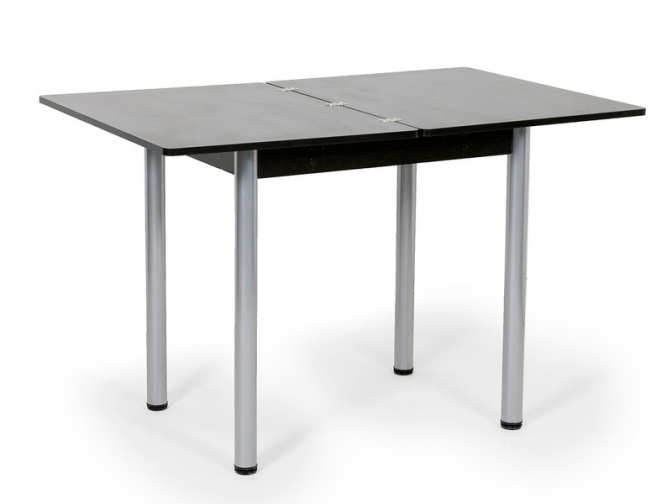 Стол поворотно-раскладной Ирис сделает пространство обеденной зоны более комфортабельным. Небольшая столешница прямоугольной формы легко раскладывается, увеличивая полезное пространство. Для металлических опор использованы специальные накладки, которые защищают пол от царапин.