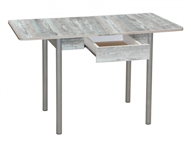 Стол обеденный раскладной Эко 80 с ящиком бетон темный+металлик