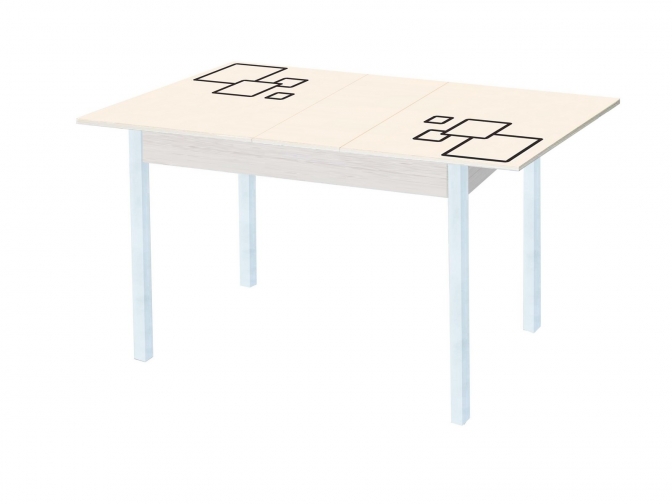 Стол обеденный раскладной Альфа фотопечать квадраты беж. дуб молочный+белый