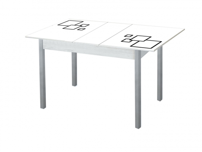 Стол обеденный раскладной Альфа фотопечать квадраты бел. бетон белый+металлик