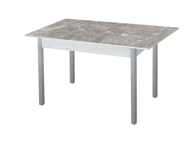 Стол обеденный раскладной Альфа фотопечать мрамор серый бетон белый+металлик