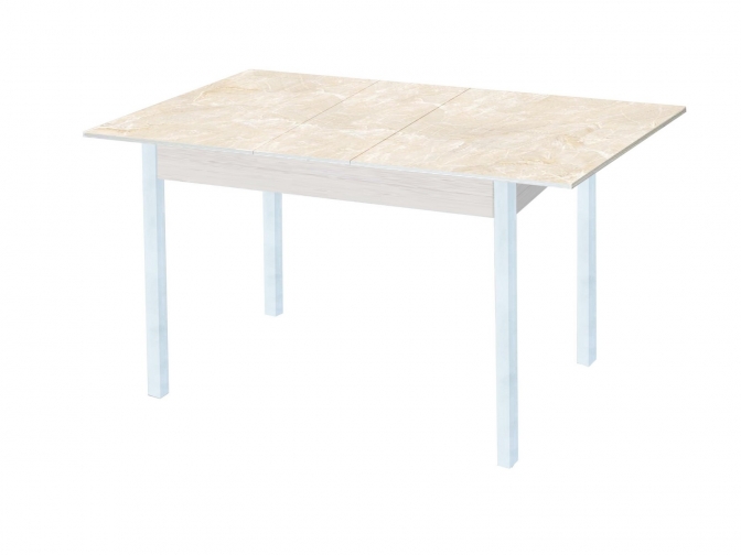 Стол обеденный раскладной Альфа фотопечать мрамор беж. дуб молочный+белый