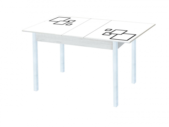 Стол обеденный раскладной Альфа фотопечать квадраты бел. бетон белый+белый