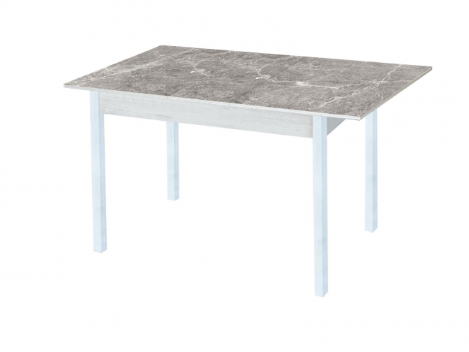 Стол обеденный раскладной Альфа фотопечать серый мрамор бетон белый+белый
