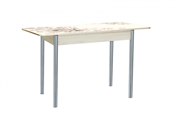 Стол обеденный раскладной Нью-Йорк фотопечать цветы дуб молочный+металлик