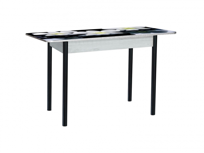 Стол обеденный раскладной Нью-Йорк фотопечать орхидея 2 бетон белый+черный