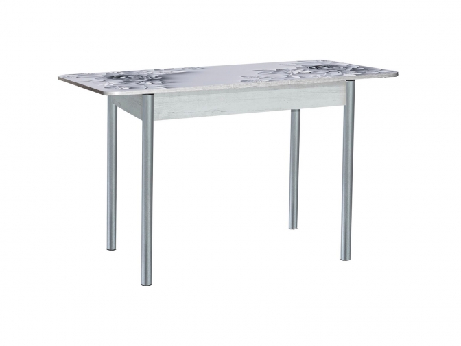 Стол обеденный раздвижной Нью-Йорк фотопечать цветы бетон белый+металлик