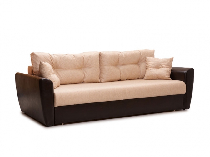 Диван Еврокнижка Амстердам Бежевый сочетает в себе максимальный комфорт и простор. Данная модель комплектуется двумя достаточно большими подушками, выступающими в качестве комфортабельной спинки, а также двумя декоративными подушками. В этой прямой модели в качестве наполнителя применяется пружинный блок.