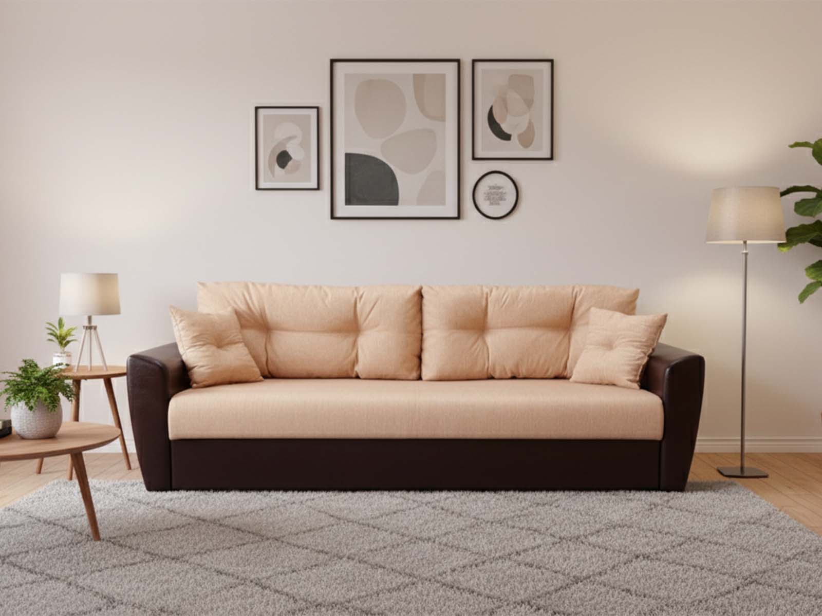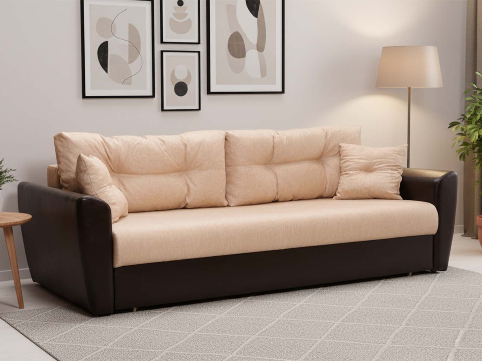 Цвет на фото: рогожка Немо бежевый, кож.зам. коричневый
