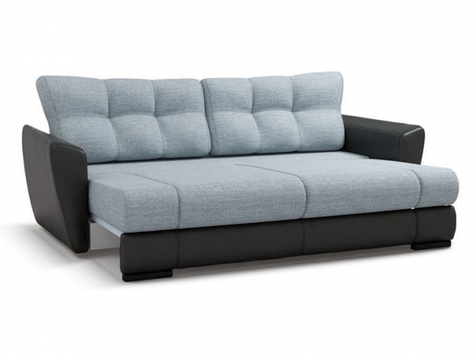 Кож.зам. Немо бежевыйДиван Еврокнижка Амстердам Серый – привлекательная модель с мягкой невысокой спинкой и подлокотниками, которая легко раскладывается в кровать, используя для этого трансформационный механизм «еврокнижка». Внизу установлен ящик для белья, где можно хранить подушки и вещи. Наполнитель – блок ППУ и блок Боннель.