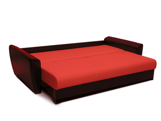 Диван Еврокнижка АМСТЕРДАМ Красный сразу привлекает внимание, благодаря необычному сочетанию классического дизайна и яркого оформления. Прямой диван с подлокотниками очень удобен, полноценный отдых обеспечивает наполнитель в виде блока пружин Боннель и материала ППУ. Для трансформации установлена надежная, долговечная система «еврокнижка».