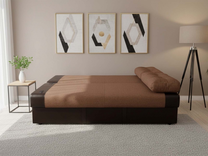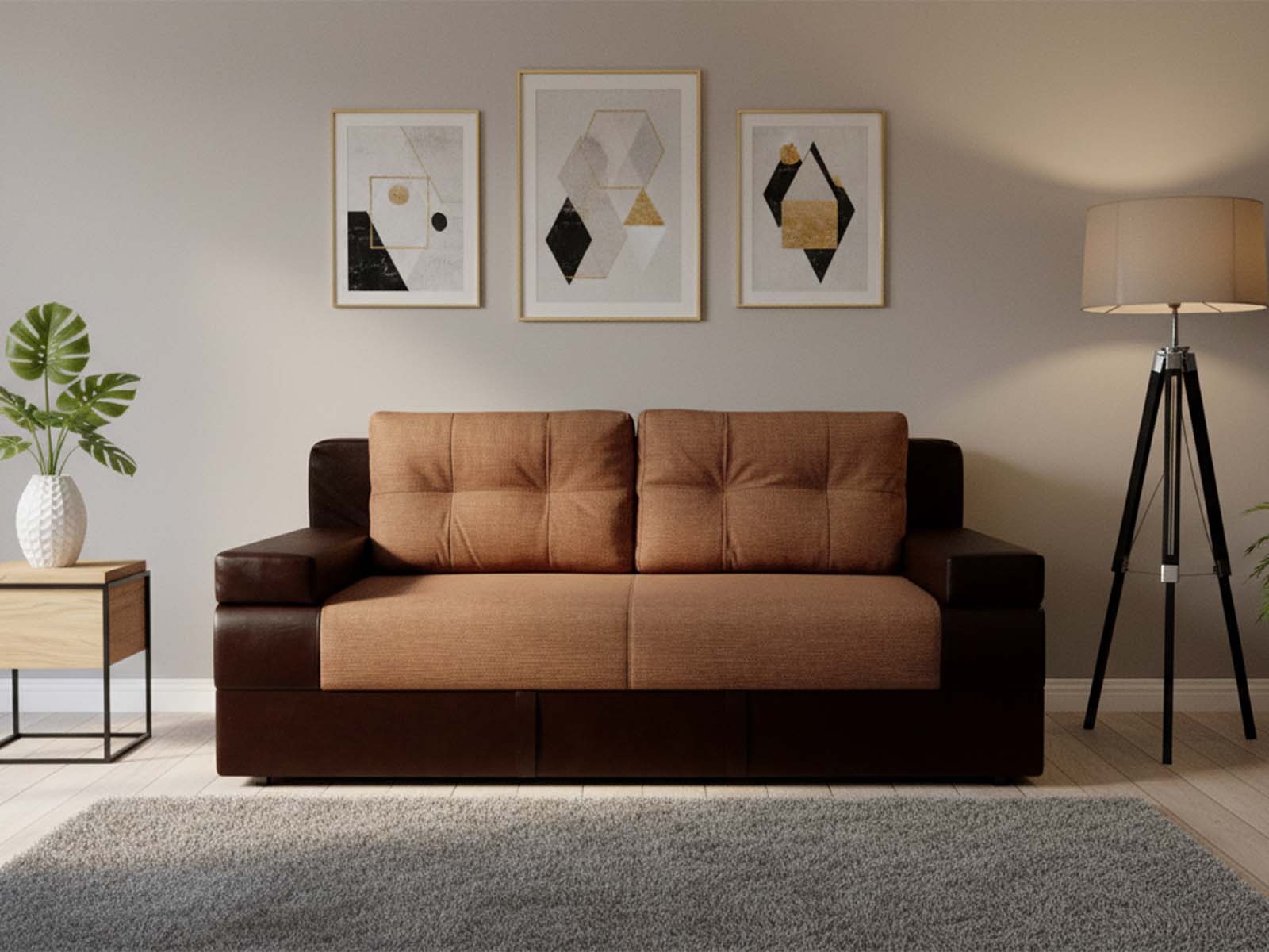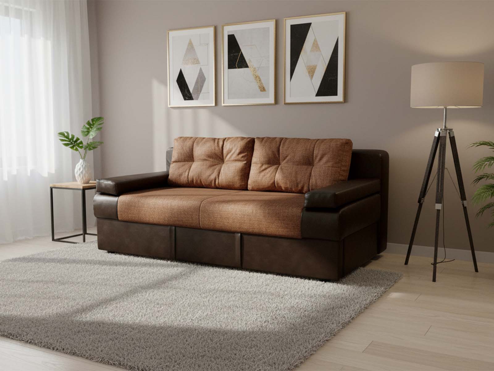 Диван Амстердам мини еврокнижка рогожка коричневая + кожзам коричневый