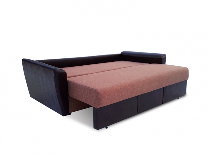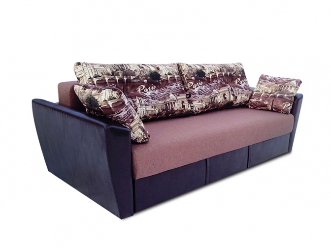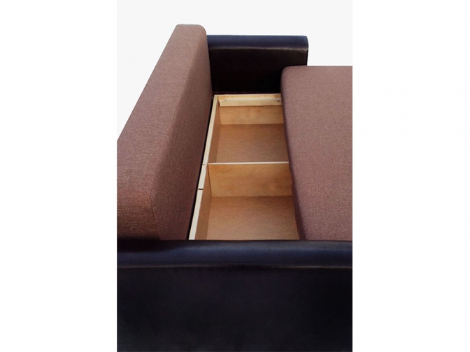 Диван еврокнижка Париж с раскладным механизмом легко разбирается в удобную кровать. В качестве наполнителя установлен классический блок пружин Боннель, каркас дивана выполнен из соснового массива с использованием ДВП и ламинированной плиты ЛДСП. Под сиденьем оборудована ниша для белья и постельных принадлежностей.
