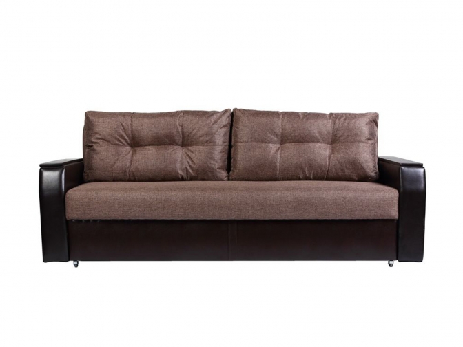 Диван еврокнижка Атлант рогожка бежевая и кожзам коричневый