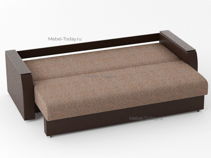 Диван еврокнижка Атлант рогожка коричневая и кожзам коричневый