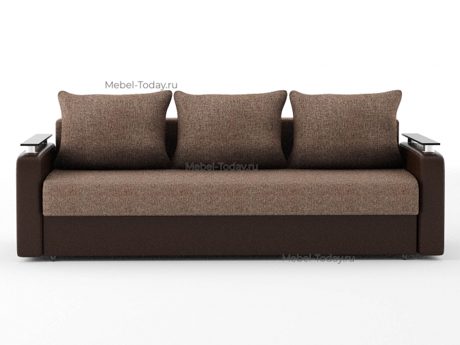 Диван-кровать Лорд еврокнижка с прямыми накладками, рогожка коричневая + экокожа коричневая