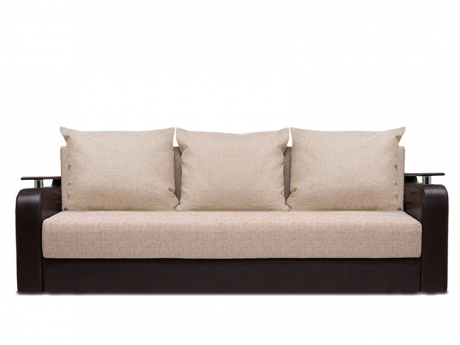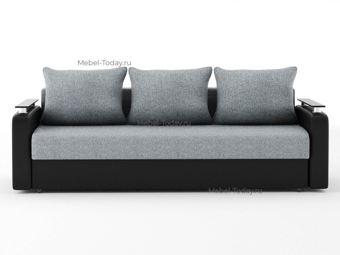 Диван-кровать Лорд еврокнижка с прямыми накладками, рогожка серая + экокожа черная