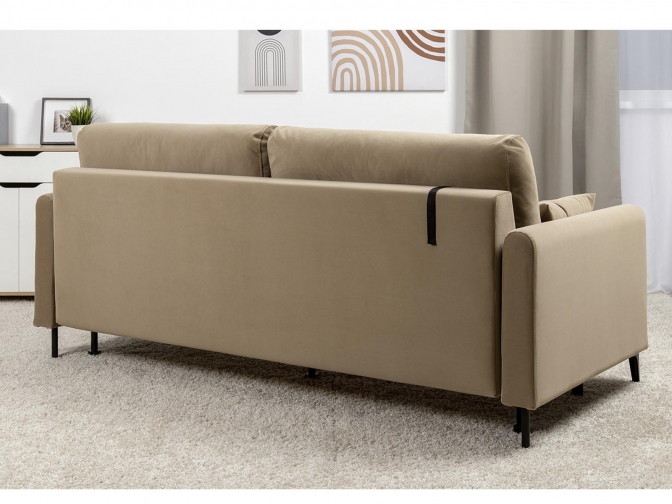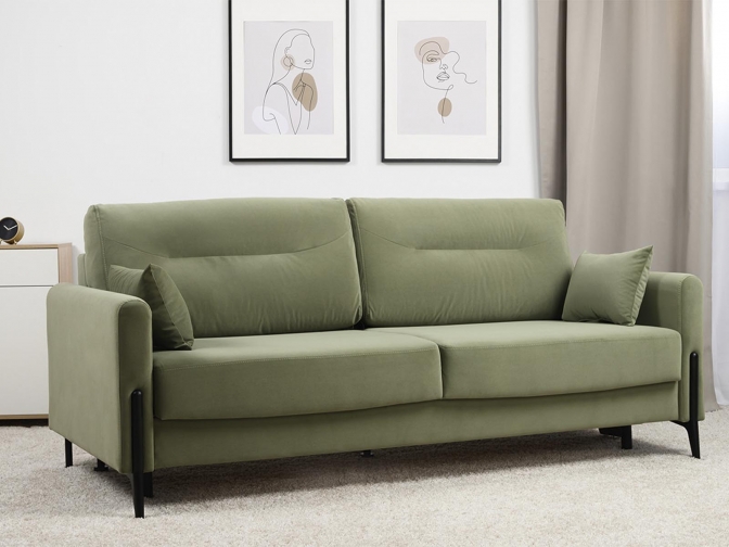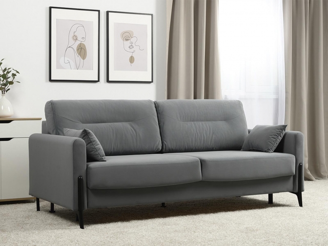 В комплекте идут 2 декоративные и 2 приспинные подушки с наполнителем из полиэфирного волокна «шарики», которые подчеркивают стиль дивана и добавляют комфорта. Опоры из лакированного дерева в черном цвете придают модели изысканный вид, а их высота 150 мм обеспечивает устойчивость и лёгкость в уходе.