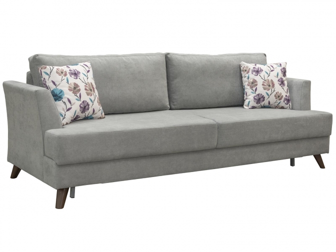В комплекте идут 2 декоративные и 2 приспинные подушки с наполнителем из полиэфирного волокна «шарики», которые подчеркивают стиль дивана и добавляют комфорта. Коричневые опоры из пластика придают модели изысканный вид.