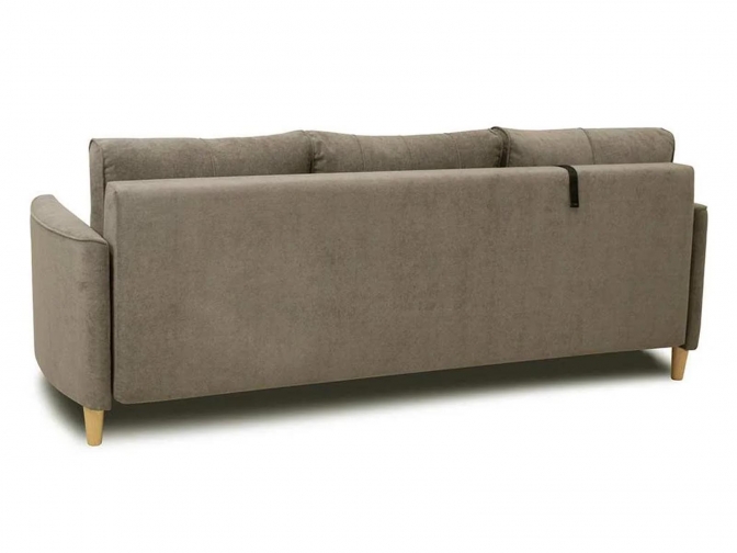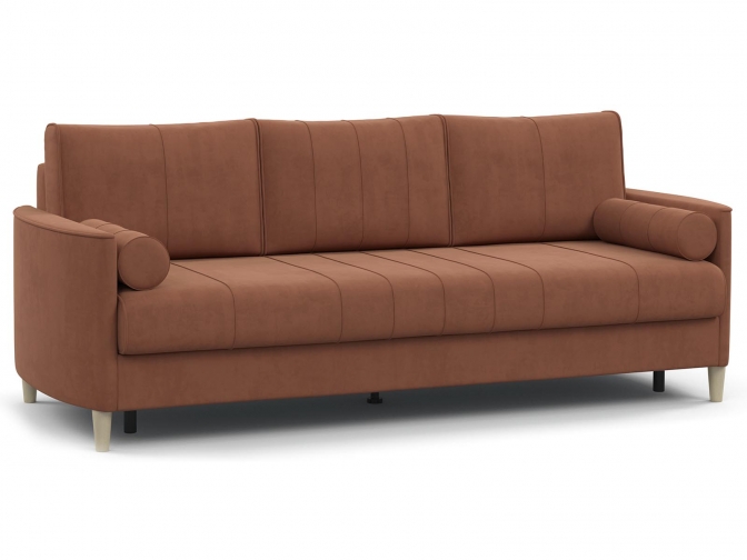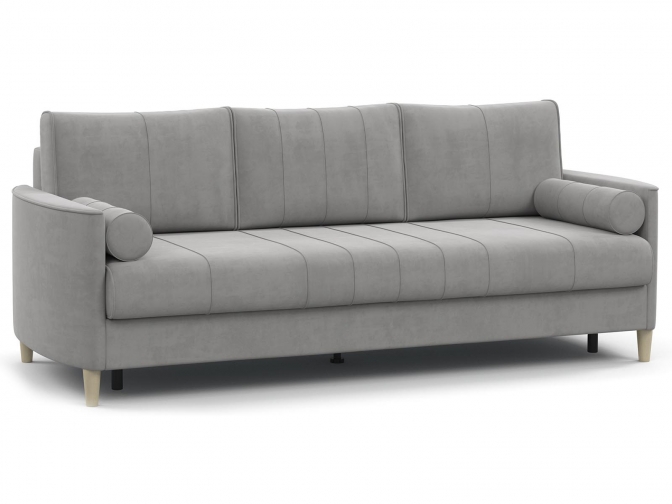 В комплекте идут 2 декоративные подушки валики и 3 приспинные подушки с наполнителем из полиэфирного волокна «шарики», которые подчеркивают стиль дивана и добавляют комфорта. Опоры из лакированного дерева в бежевом цвете придают модели изысканный вид, а их высота 120 мм обеспечивает устойчивость и лёгкость в уходе.