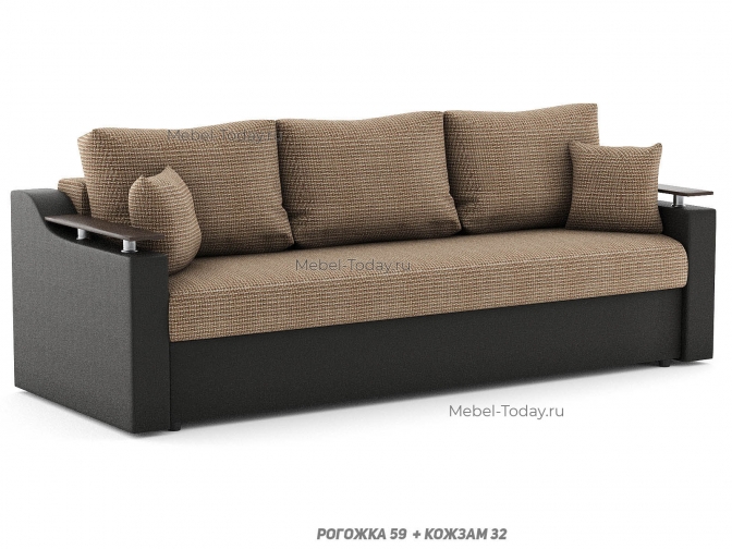 Диван еврокнижка Сенатор с МДФ подлокотниками, обивка рогожка, наполнитель ортопедический, пружинный или ППУ