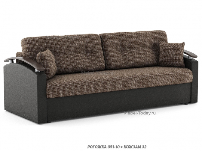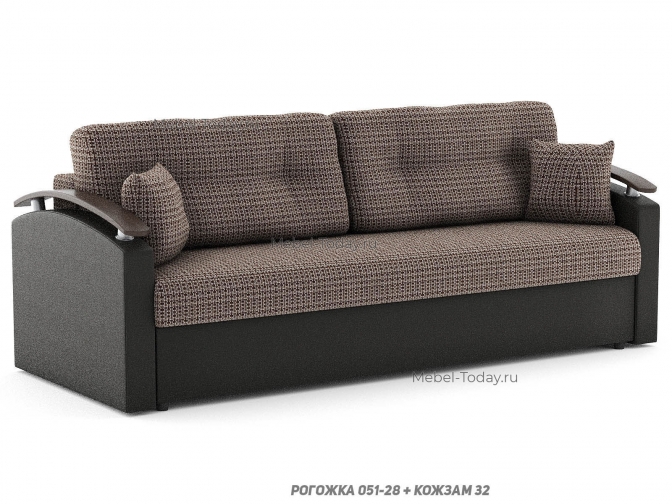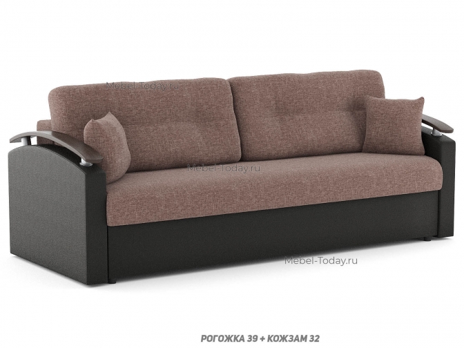 Диван еврокнижка Сицилия с МДФ-подлокотниками ортопедический пружинный или ППУ, обивка рогожка