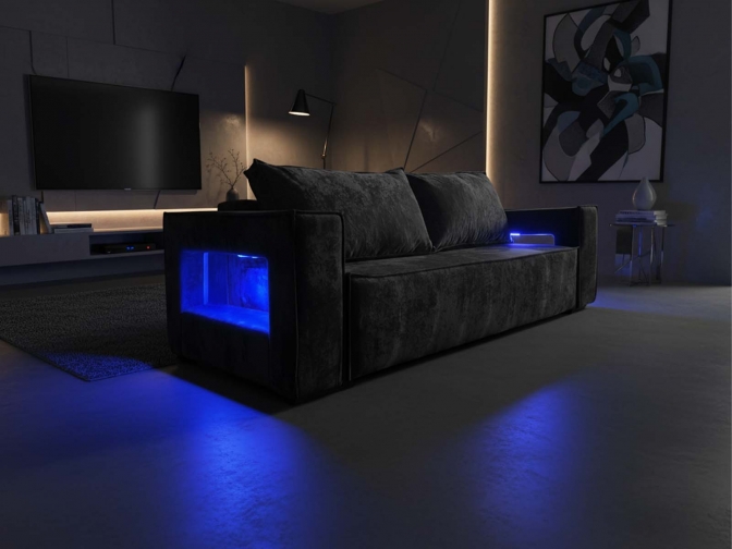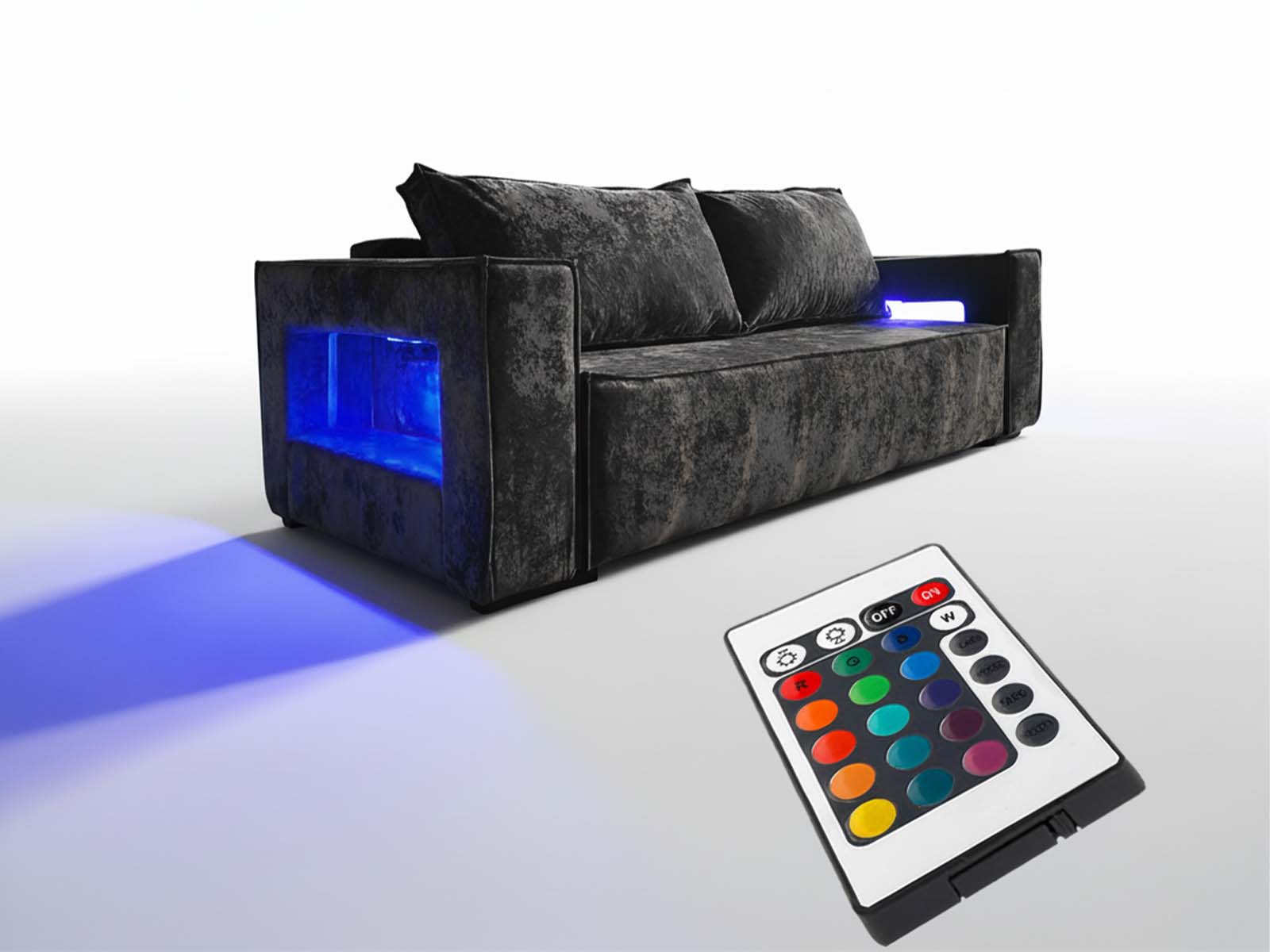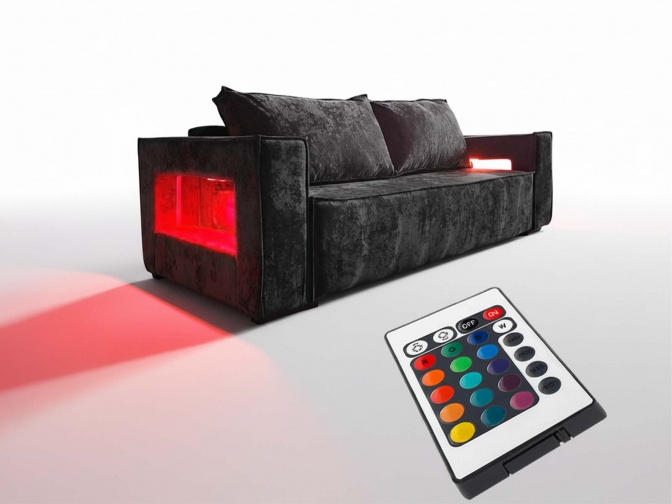 Диван еврокнижка Лофт Люкс с подсветкой, спальное место 140*195, обивка Плюш черный