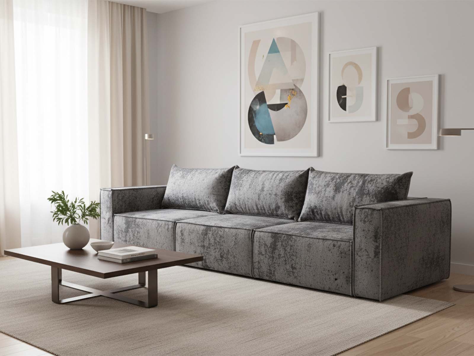 Диван еврокнижка Лофт 3-х модульный, спальное место 145*265, обивка Плюш серый