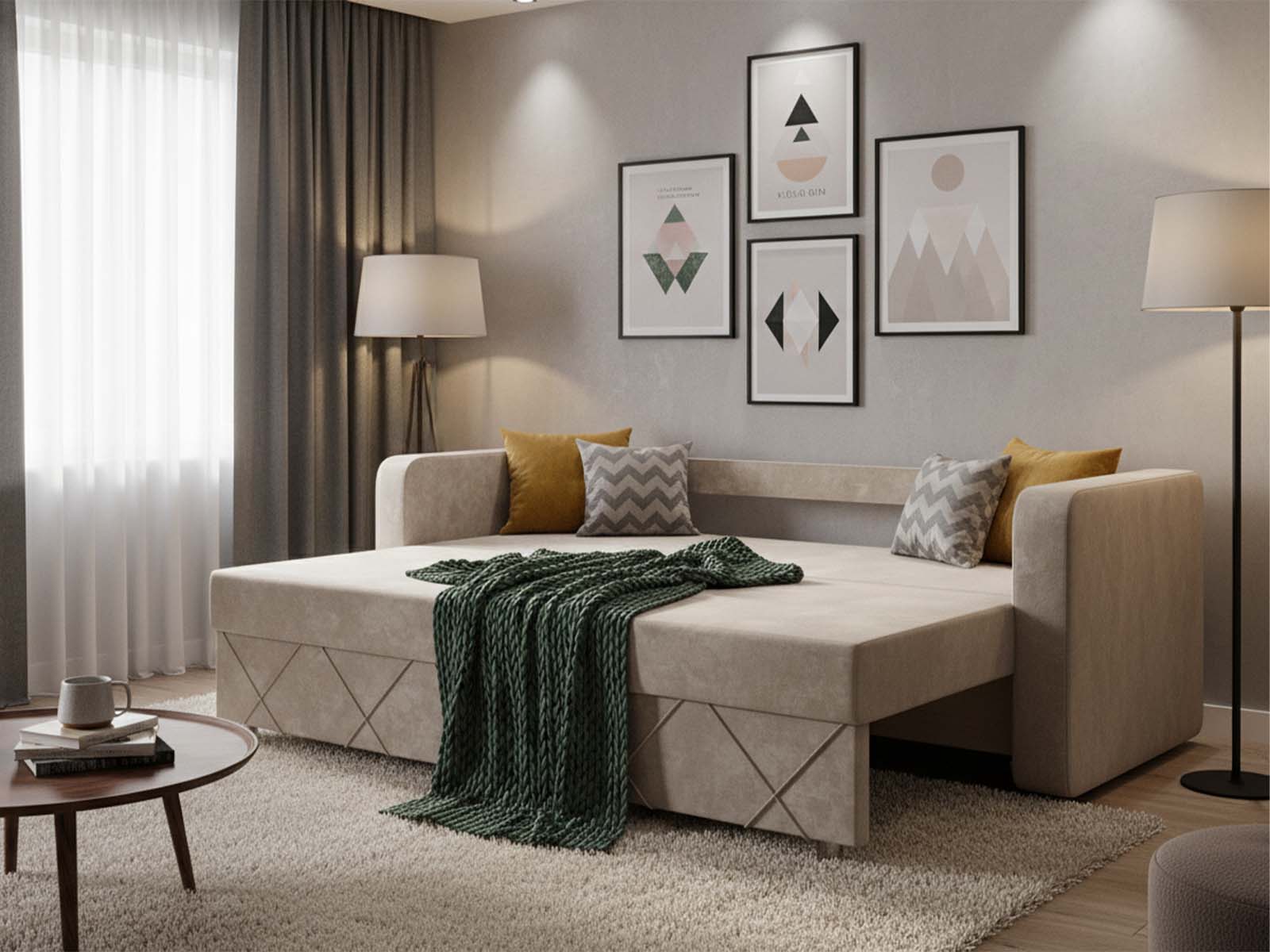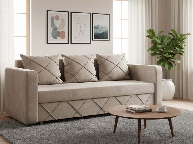 Диван Стелла механизм еврокнижка обивка плюш бежевый