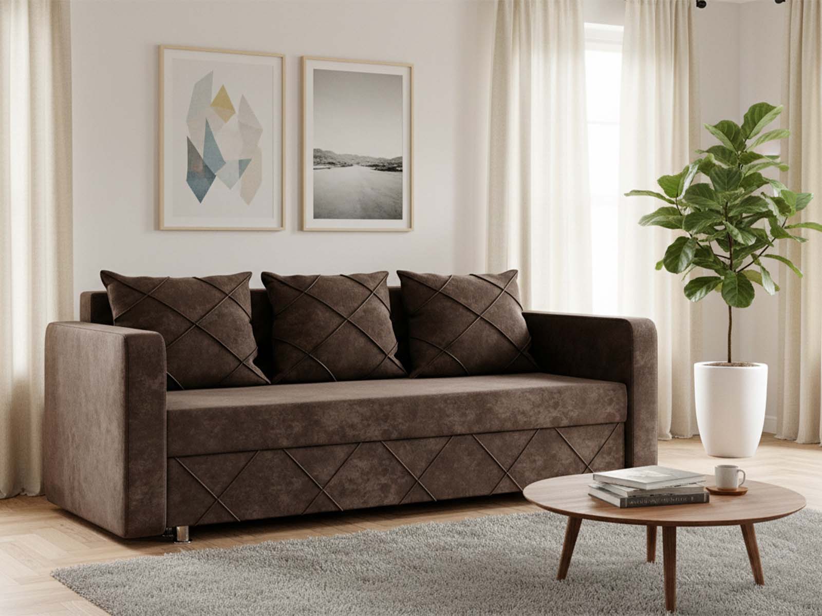 Диван Стелла механизм еврокнижка обивка плюш коричневый