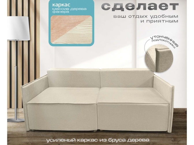 Диван Норд-Лофт 2.0 с узкими подлокотниками бежевый, еврокнижка, ортопедический, велюр или бархат — стильная и функциональная модель для гостиной или студии. Оснащён надёжным механизмом «еврокнижка», комфортным независимым пружинным блоком и спальным местом. Прочный каркас, износостойкий микровелюр и модульная конструкция обеспечивают долговечность и гибкость планировки. планировки.