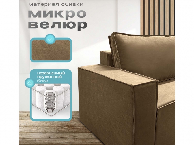 Диван Норд-Лофт Макси коричневый, еврокнижка, ортопедический, велюр или бархат