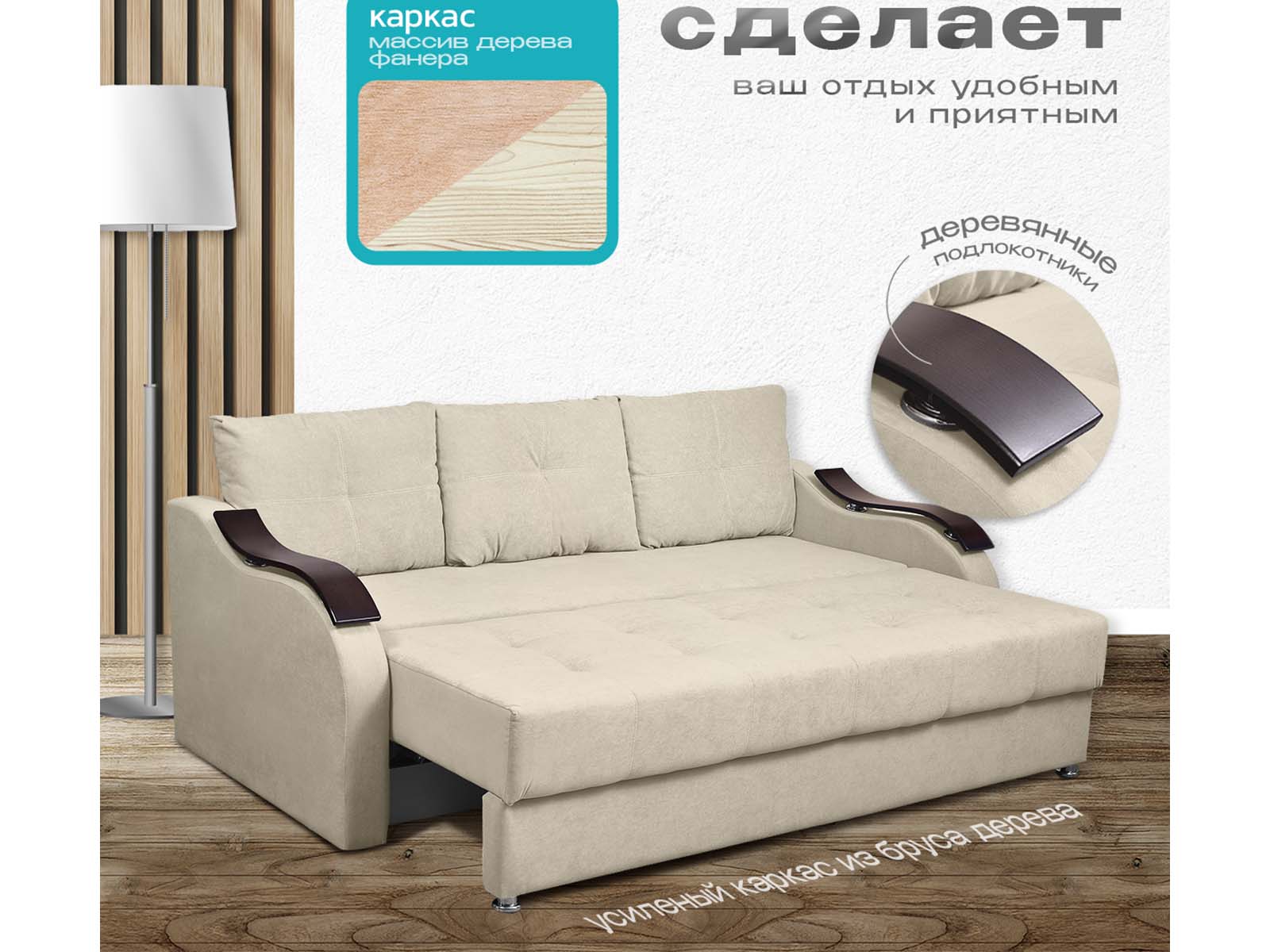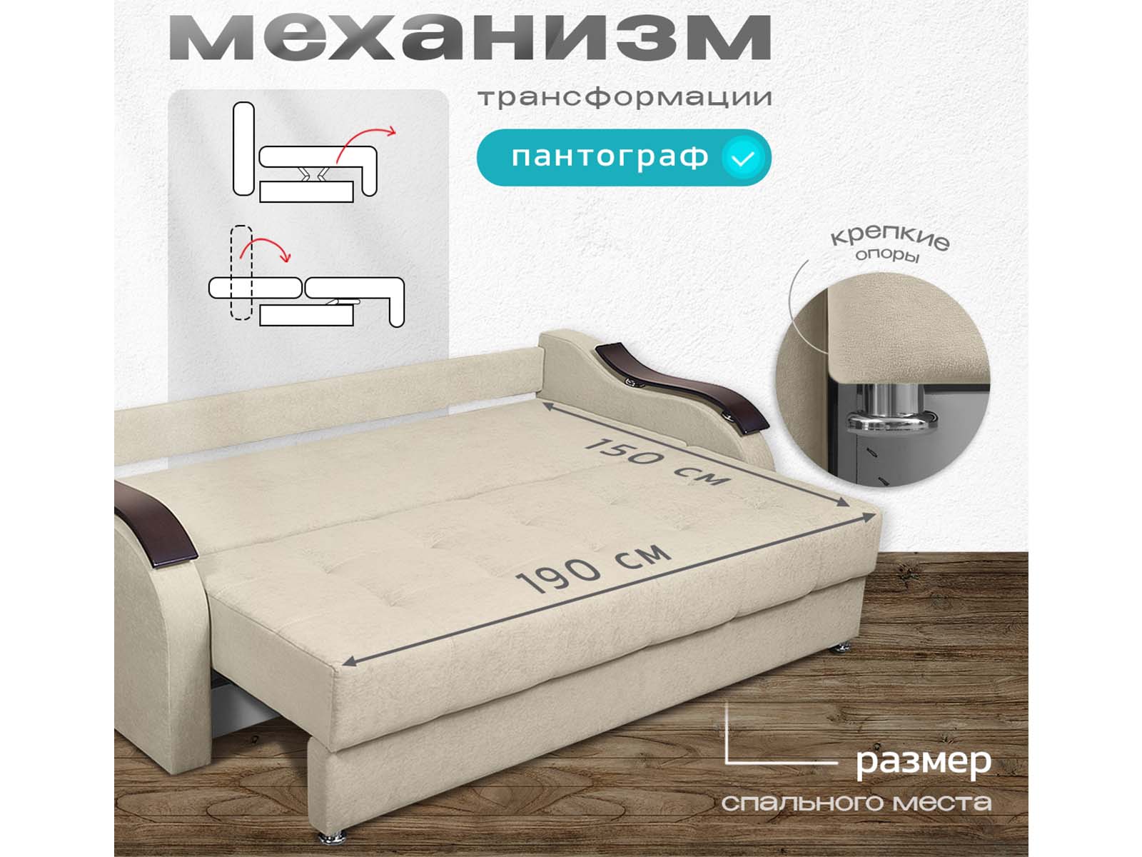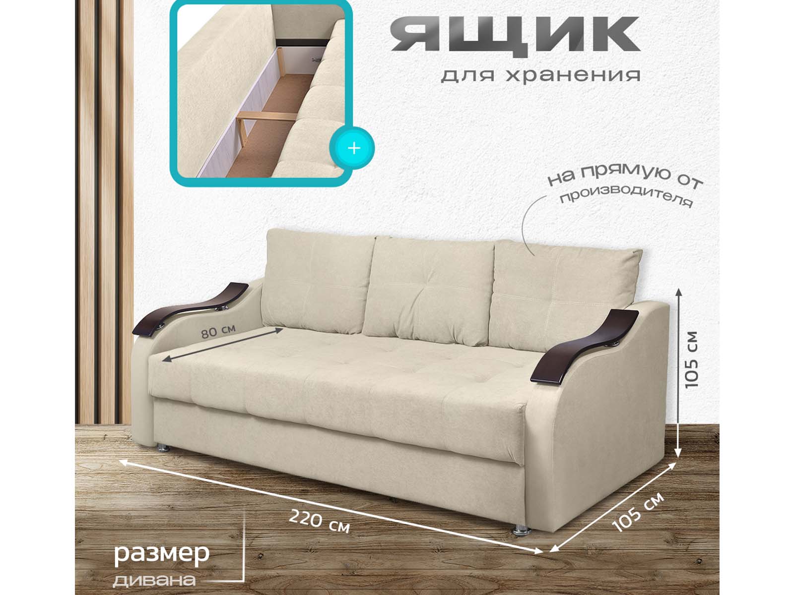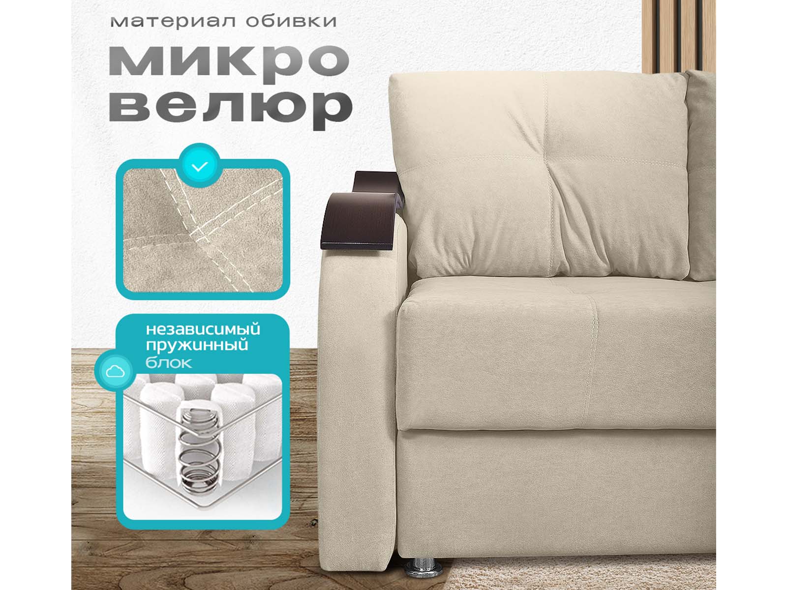 Диван Исланд бежевый, еврокнижка, ортопедический, велюр или бархат