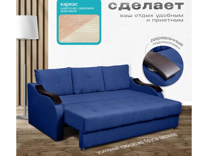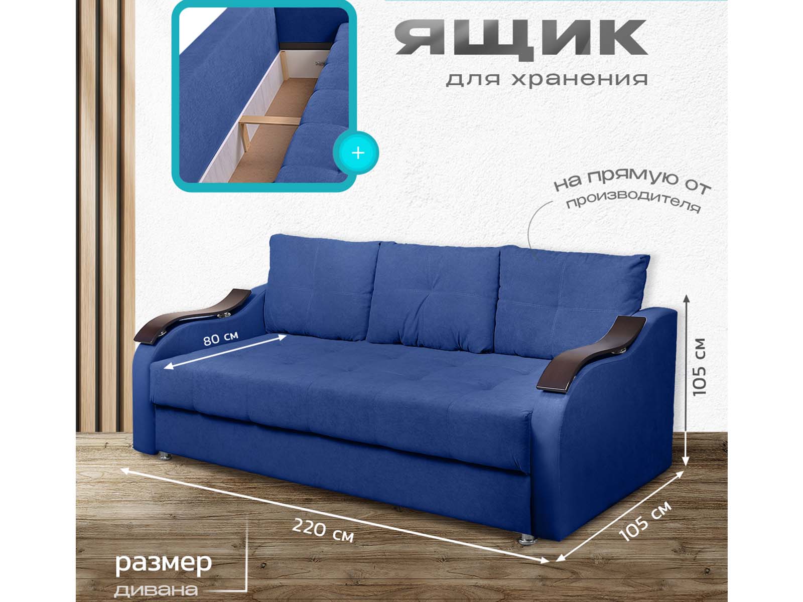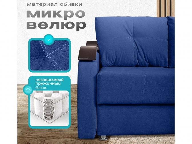 Диван Исланд синий, еврокнижка, ортопедический, велюр или бархат