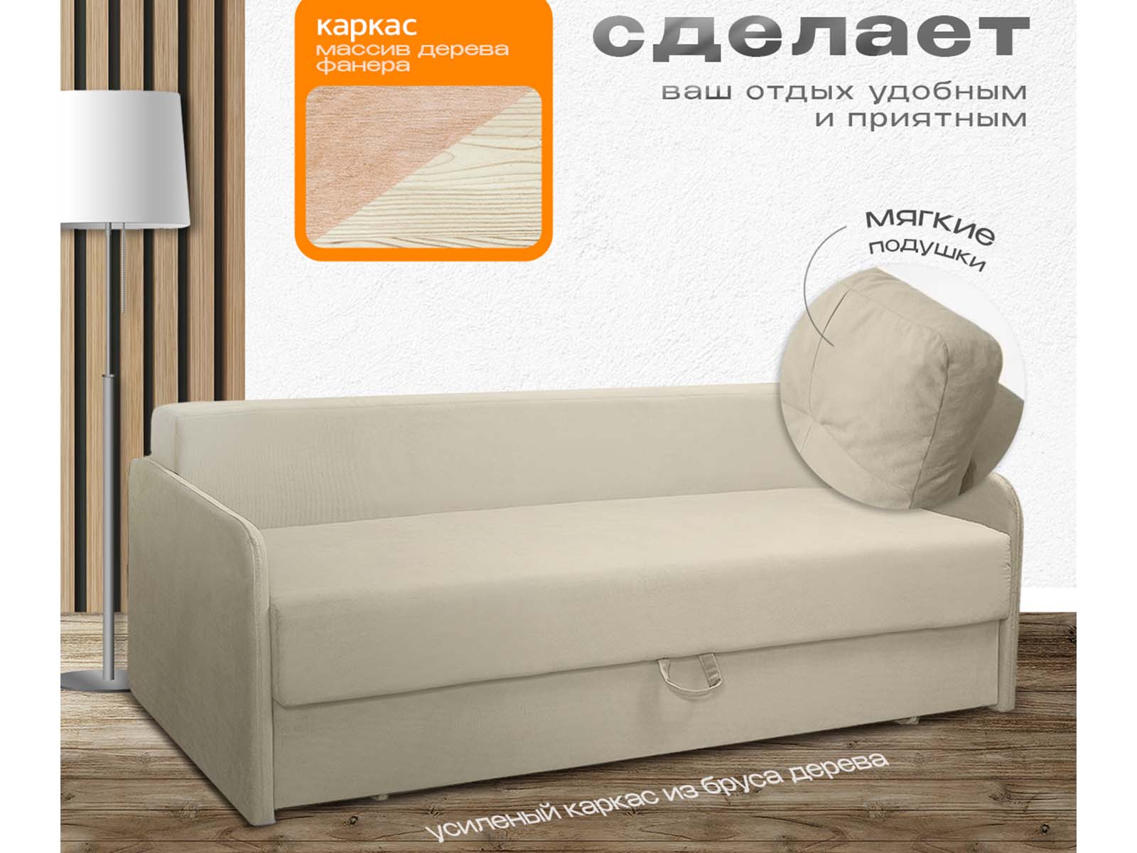 Диван Леон бежевый, еврокнижка, ортопедический, велюр или бархат — раскладной диван, который умеет экономить пространство, не теряя в удобстве. Компактный в сложенном виде, он легко превращается в полноценное спальное место, а встроенные ящики для белья помогают забыть о бардаке. Лаконичный дизайн впишется и в студию, и в уютную дачную гостиную. Умный выбор для тех, кто ценит порядок и комфорт без лишних метров.