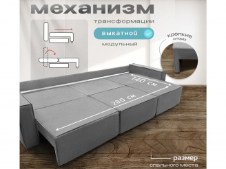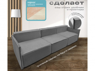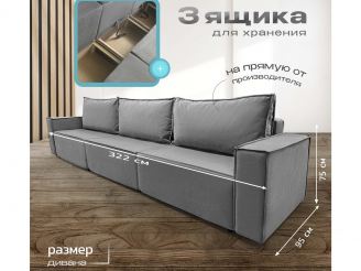 Диван Норд-Лофт Макси серый, еврокнижка, ортопедический, велюр или бархат