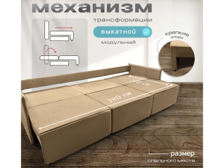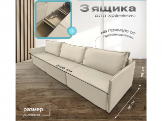 Диван Норд-Лофт Макси 2.0 бежевый, еврокнижка, ортопедический, велюр или бархат