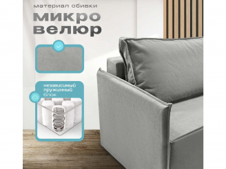 Диван Норд-Лофт Макси 2.0 светло-серый, еврокнижка, ортопедический, велюр или бархат