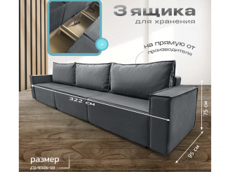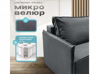 Диван Норд-Лофт Макси 2.0 темно-серый, еврокнижка, ортопедический, велюр или бархат
