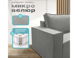 Диван Норд-Лофт Макси 2.0 серый, еврокнижка, ортопедический, велюр или бархат