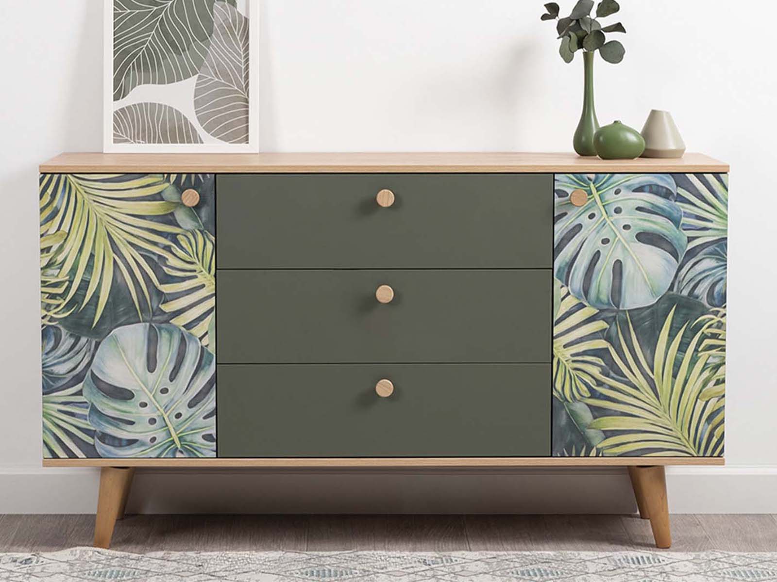 Комод Маттиас 16.245 - Тропическая фотопечать и деревянные элементы дарят эстетическое удовольствие, а шариковые направляющие и доводчики делают использование по-настоящему приятным.