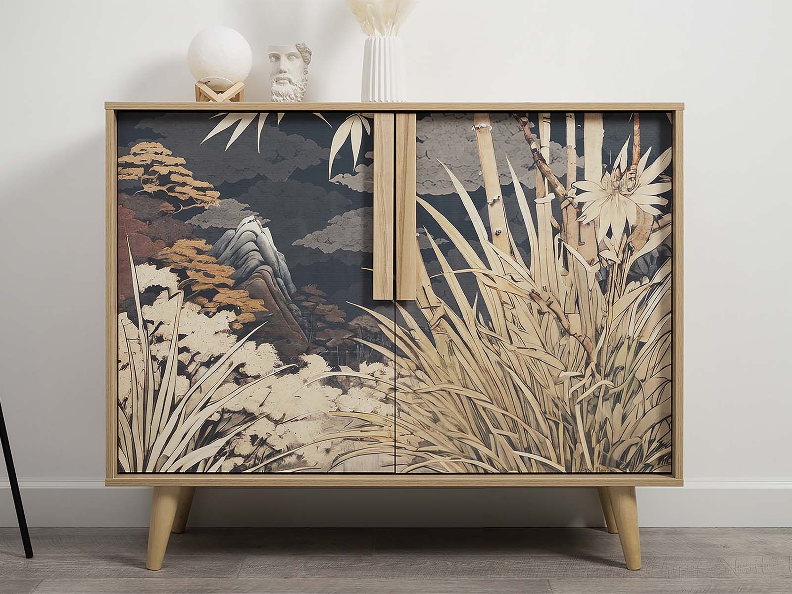 Комод Току 16.230.04 - восточная эстетика и европейская практичность. Фотопечать и массив дерева формируют уникальный дизайн, а регулируемые полки и углубленные фасады обеспечивают комфорт в использовании.