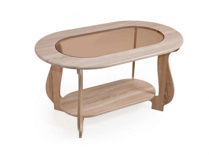 Стол журнальный СЖ-21 отличается элегантным дизайном. Большая овальная столешница украшена декоративной вставкой из стекла. Под столешнице находится небольшая овальная полочка, которая опирается на фигурные ножки модели. Такой столик украсит собой классическую или современную обстановку, придаст ей тепла и уюта.